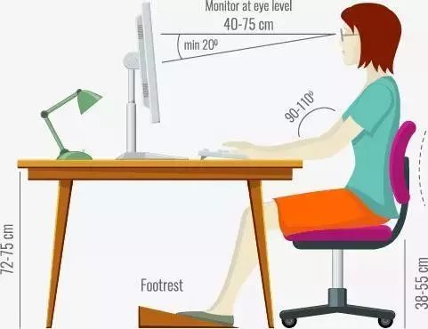 颈椎处于中立位比较好,对于年轻人来说,宁可“矫枉过正”往后仰,也不要老是低头。 其实,通过日常行为方式的调整可有效防治颈椎生理曲度变直。 1.尽量不要低头看手机、电脑等 ❖ 适当垫高电脑,以减少低头时间及程度; ❖ 凳子不要太高:凳子的高度以桌面高度的0.5~0.6倍为宜; ❖ 选择与桌面呈10~30度的斜面工作板,视线刚好平视书本、屏幕等,有利于坐姿的调整。